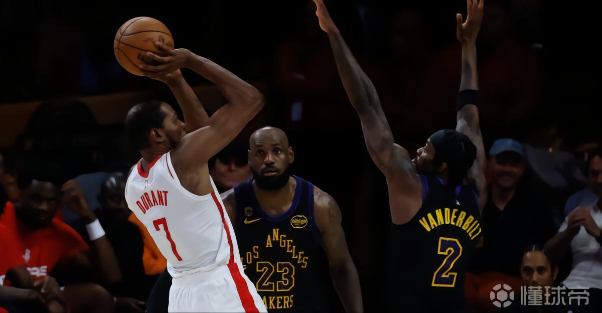 与湖人系列赛G1杜兰特就曾因为髌腱受伤缺阵,火箭也在客场98-107不敌湖人。G2杜兰特完成复出,全场砍下23分6篮板4助攻,但火箭仍以94-101再次负于湖人。