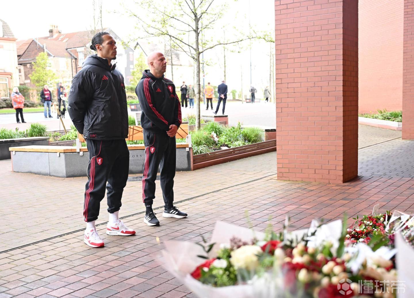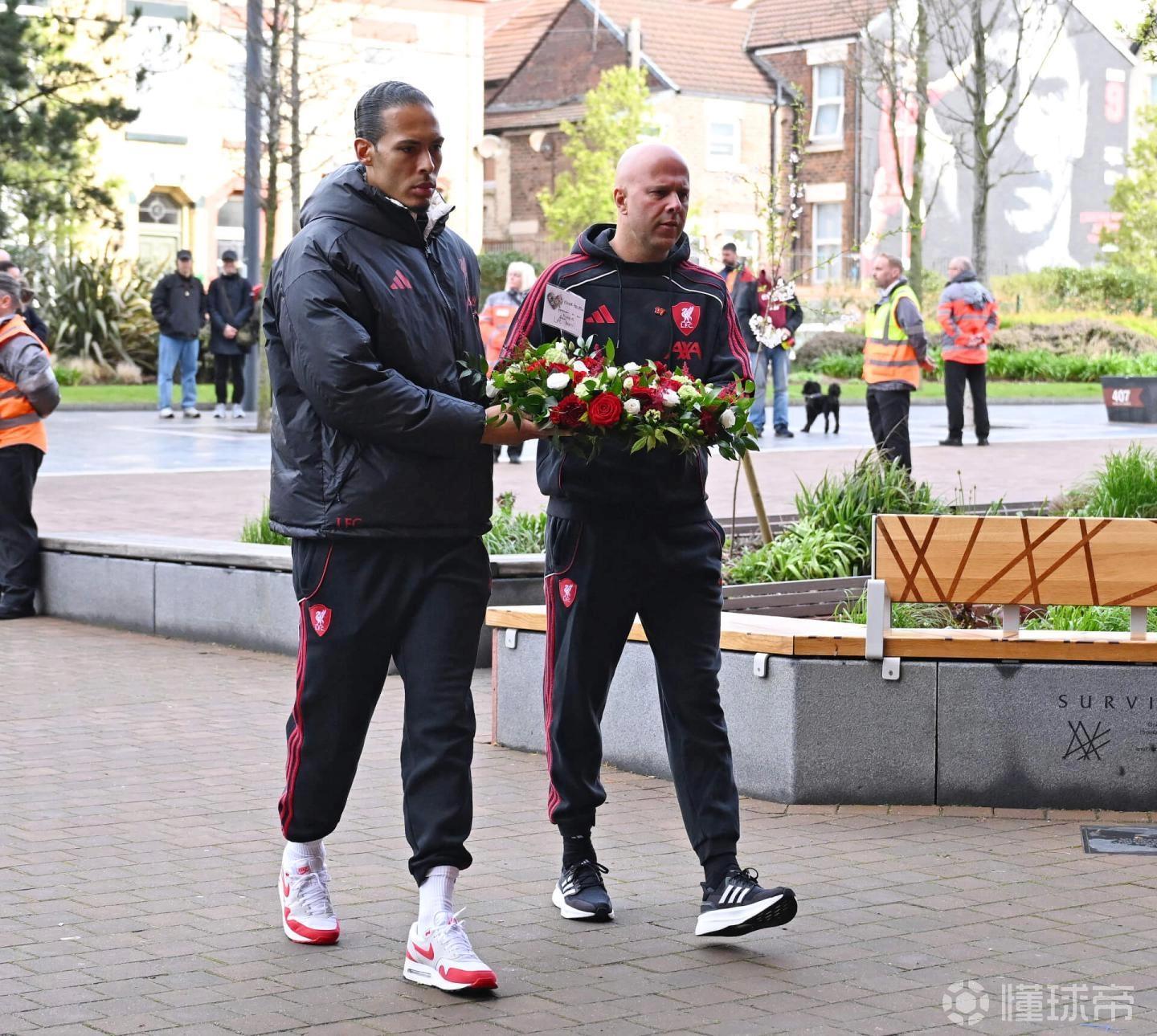 为表达哀思,利物浦一线队、女队以及U21、U18梯队的主教练和队长范戴克今日前往安菲尔德的希尔斯堡纪念碑献上花圈。俱乐部高层也参与其中,包括首席执行官比利-霍根、传奇球星达格利什爵士,以及俱乐部大使伊恩-拉什和娜塔莎-道伊。