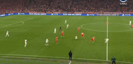 北京时间4月16日欧洲冠军联赛 1/4决赛次回合,拜仁慕尼黑对阵皇家马德里。上半场开场不久,诺伊尔送礼,居莱尔吊射破门。基米希开出角球,帕夫洛维奇头槌扳平比分。随后,居莱尔任意球直挂死角得分。于帕梅卡诺助攻,凯恩扳平比分。维尼修斯传球,姆巴佩建功。上半场结束,皇马3-2领先拜仁。