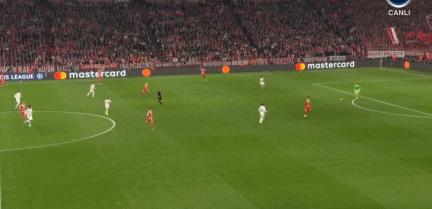第38分钟,于帕梅卡诺直塞,凯恩劲射破门,拜仁总比分再领先4-3皇马!