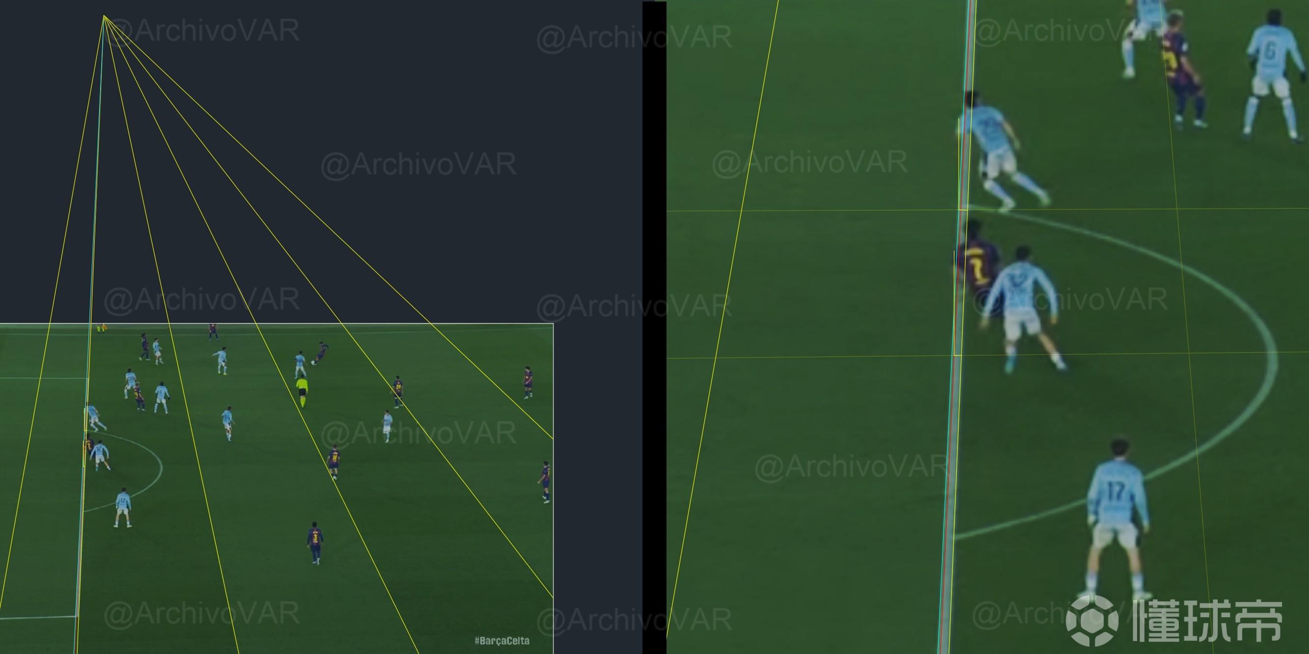 西班牙裁判分析机构Archivo VAR表示:SAOT(半自动越位系统)又一次针对巴萨做出争议判罚。费兰-托雷斯处于塞尔塔队最后一名防守球员的身后。这是一粒有效进球。视频助理裁判再次选取了错误的帧画面,此时皮球已从佩德里脚下传出。