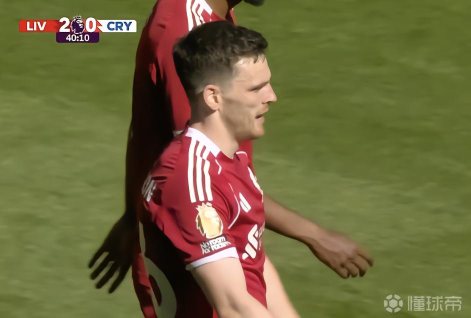 英超第34轮,利物浦主场对阵水晶宫,上半场罗伯逊破门为利物浦扩大比分,时隔两年再度在英超赛场进球。